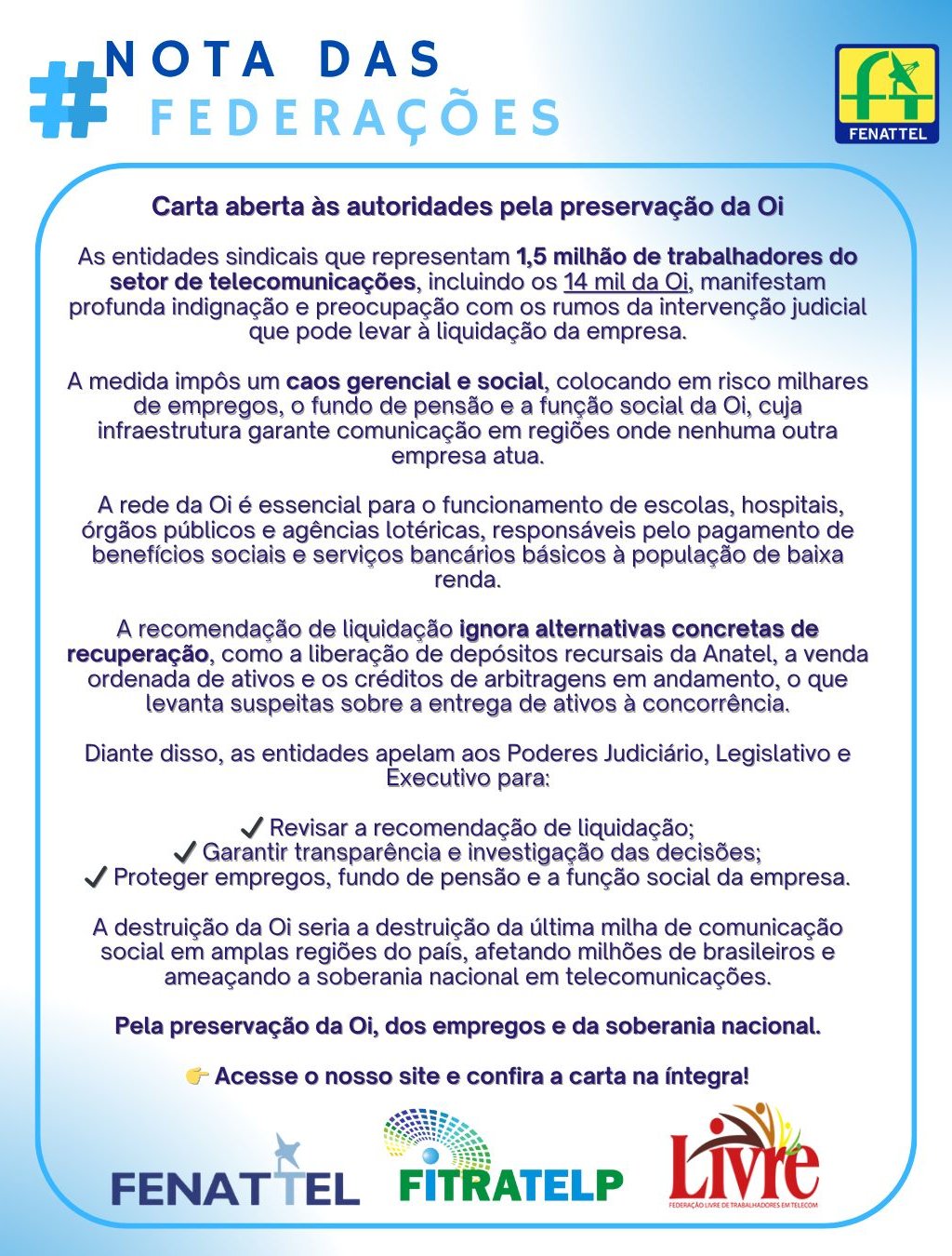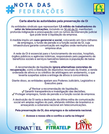 Carta aberta às autoridades pela preservação da Oi